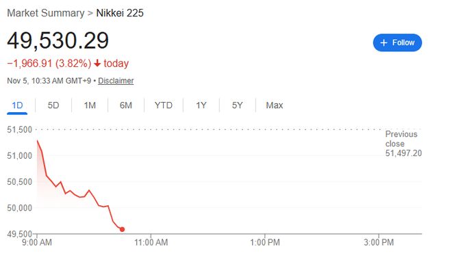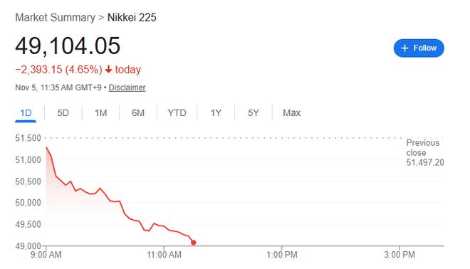 美股“黑色星期二”蔓延至亚洲市场,对科技股估值过高的担忧削弱了市场风险偏好,投资者对持续已久的人工智能驱动涨势踩下刹车。 周三,美国股指期货在亚洲早盘进一步下滑,亚洲股市遭遇七个月来最剧烈抛售,韩国和日本股指较周二触及的纪录高位下跌超过5%。韩国Kospi 200指数期货盘中一度大跌逾5%,韩国于当地时间上午9点46分触发“Sidecar”机制,暂停程序化交易卖单5分钟。韩国上次触发该机制是在今年4月。 以下为主要资产走势: 标普500期货下跌0.18%,纳斯达克100指数期货下跌0.34%,道琼斯期货涨0.07%,延续了周二美股的弱势表现; 在全球股市经历了一轮由人工智能热潮和降息预期驱动的强劲上涨后,投资者对高估值的担忧正迅速升温,引发了市场的普遍回调。科技股在此轮抛售中首当其冲,华尔街高管的风险警示进一步加剧了市场的避险情绪,资金开始流向传统避险资产。 此轮调整发生在纳斯达克指数连续七个月上涨、自4月低点累计涨幅超过50%之后。多位市场分析师指出,获利回吐、美国政府停摆持续、加密货币暴跌以及日元走强等多重因素交织,共同推动了这场回调。 StoneX高级市场分析师Matt Simpson表示,考虑到纳斯达克指数连涨七个月且自4月低点上涨超过50%,当前抛售从大局来看只是轻微调整。"在某个时点,利润需要兑现。但当动能像全球市场那样转向时,止损被触发,迫使交易员在其他市场平仓以弥补损失,进而引发新的看跌活动。" IG市场分析师Tony Sycamore认为这是调整的开始。他指出,自4月低点以来的涨势持续不断,加上首席执行官们对回调的警告,以及电影《大空头》原型人物Michael Burry买入英伟达和Palantir看跌期权,再叠加美国政府停摆进入创纪录天数,多重因素结合启动了这轮风险规避抛售。 这股抛售潮正从华尔街蔓延至亚洲。Saxo首席投资策略师Charu Chanana指出,这是亚洲人工智能和半导体龙头股在创纪录高位后的典型持仓平仓和获利了结日。美国大型科技股的波动削弱了全球成长股和人工智能概念股的情绪,加密货币大幅回撤收紧了更广泛的风险偏好,日元走强则对日本出口导向型股票构成压力。 16:19更新: 诺和诺德欧股跌4.3%,公司三季度业绩不及预期,且下调了全年销售额增长预期。