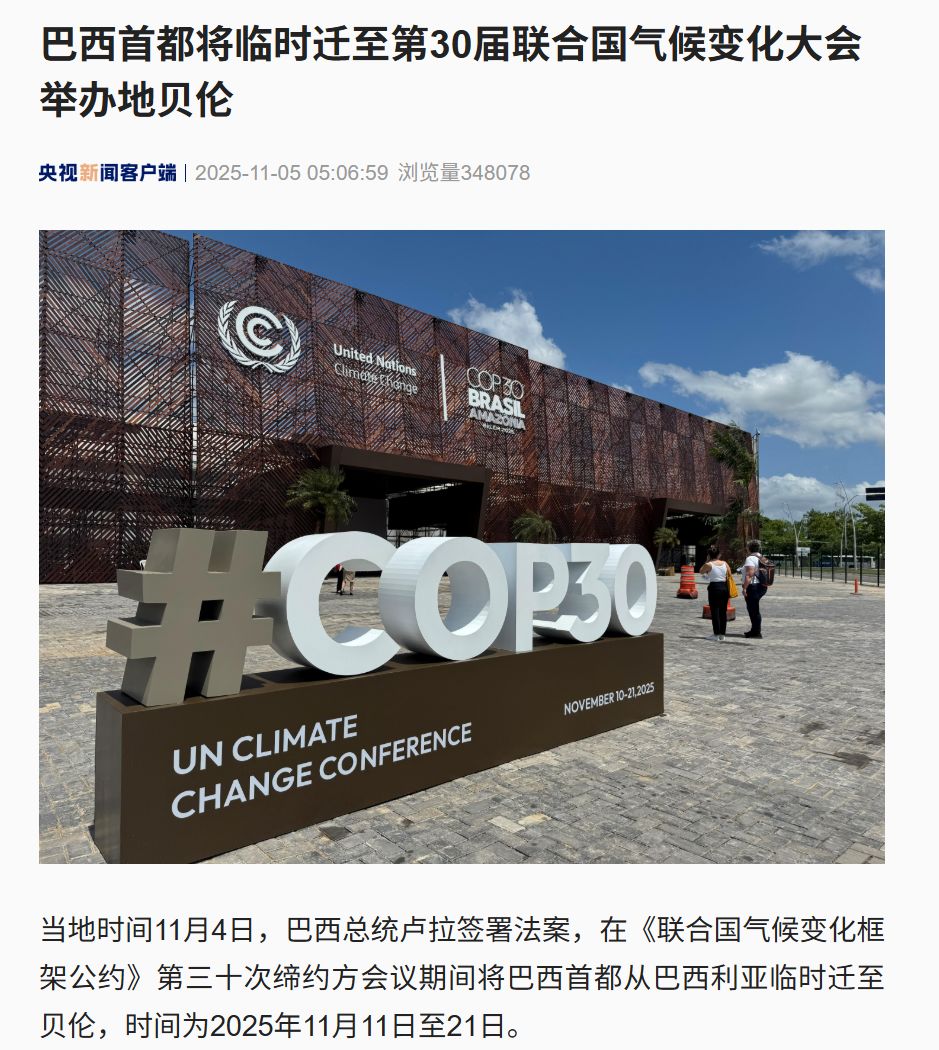 每经编辑|张锦河 据新华社,巴西总统卢拉11月4日在巴西北部帕拉州首府贝伦签署法案,决定在11月11日至21日期间将巴西首都由巴西利亚迁至贝伦,以配合即将在贝伦举行的《联合国气候变化框架公约》第三十次缔约方大会(COP30)。 巴西政府4日发布公告说,贝伦作为临时首都期间,行政、立法和司法三大权力部门均可在此办公,总统及部长签发的所 有文件和指令均将签发地改为贝伦。 贝伦是亚马孙雨林地区重要的交通与经济枢纽。公告说,巴西希望通过临时迁都凸显亚马孙地区在全球环境议程中的重要性,强调巴西应对气候变化的承诺。 本次联合国气候变化大会将于本月10日至21日举行。此前,巴西曾于1992年联合国环境与发展大会期间将首都临时迁至里约热内卢。