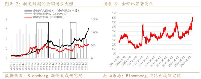 历史上,铜价在特定时期与金银的相关性会显著增强,这并非首次,最典型的案例发生在: 1)2008年全球金融危机后(约2009-2011年): 在雷曼兄弟倒闭引发全球流动性恐慌的初期,所有资产遭遇无差别抛售,铜价暴跌。但随着全球央行,尤其是美联储开启大规模的量化宽松(QE),市场逻辑迅速切换。泛滥的流动性、接近于零的利率以及对未来通胀预期担忧,共同增加了市场对于“实物资产”的需求。在此期间,黄金先开启牛市,白银紧随其后,而铜价也表现出惊人的强势,涨幅远超其当时实体经济需求的复苏程度。驱动它的核心逻辑,正是其作为“抗通胀实物资产”的金融属性。 2)2020年新冠疫情后(约2020年下半年-2021年): 与2008年剧情相似,疫情初期经济停摆预期导致铜价崩盘。但在全球央行“放水”和财政刺激的洪流下,市场迅速交易“再通胀”预期。铜与金银再次同步上涨,成为对冲货币贬值和未来通胀的载体。 所以当全球货币体系信用受到挑战、主要央行开启大规模宽松、市场对长期通胀产生强烈预期时,铜的“商品货币”属性便会压倒其“工业商品”属性,成为价格的主导驱动力。前期铜价驱动的核心逻辑也就基于此:宏观叙事下的“商品货币”联盟,而相较于金银,铜价价格中枢受到尾部风险的影响相对抑制,金铜比出现显著高位,一旦风险减弱,金铜比修复仍是铜价的潜在驱动。