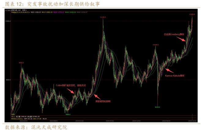 3.突发事故 在长期供应结构性紧张的背景下,短期的突发事故易点燃短期市场情绪。2023年11月Cobre铜矿由于被最高法院裁定运营合同违宪,面临关闭,当时并未引发较大的供给压力计价,而是需求低迷主导行情趋势。2024年市场开始计价美联储的宽松预期,铜价才开启了一轮较大周期和规模的上涨。今年5月Kamoa-Kakula事故导致减量时市场也只是短期反应。直到这一次的自由港Grasberg事故带来的显著减量预期,再次将中枢价格抬升。在情绪层面更加深全球铜供应链的脆弱性伴随一次次的突发事故,进一步加深了供给的紧缺叙事,从而引发恐慌性采购和空头回补,急剧放大价格的波动幅度。