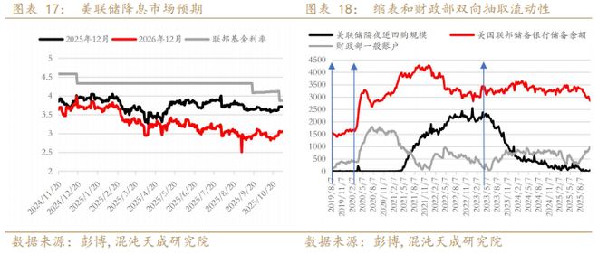 驱动二:降息与停止缩表的市场预期定义 这是当前市场最大的分歧点,因为全球央行(美联储为主导)的降息既能定价“软着陆”下的复苏,也能定价“硬着陆”下的衰退。这一驱动通过的主要观察指标就是美股走势(流动性)和美国为主的经济数据。 前期美股走势强势,AI叙事持续走强,科技行业资本开支和企业利润仍是正循环;经济数据端尚未出现点燃“衰退”预期的数据;市场明显定价缓慢降息和停止缩表后的经济复苏逻辑,这也是前期铜价相对强势的主要原因。不过10月下半月以来整体资产端未出现明显上行甚至回落,主要受到流动性的抑制: ①流动性的相对紧缩是现阶段对于铜价的主要尾部影响因素,10月以来全球风险资产的美元资金,正被美国财政部和美联储双向抽走: 美元净流动性=美联储资产负债表-隔夜逆回购-美国财政部TGA账户余额 1)美联储通过 QT缩表收回银行准备金,而隔夜逆回购的缓冲垫流动性已经基本耗尽; 2)财政部通过TGA补充抽走市场现金,政府关门阻碍资金回流; 3)美股的涨势集中性极高,10月以来的主要上涨均来自于Meg-7,这也就导致了结构性的繁荣行情,但这涨势并不健康,并时刻短线影响市场预期; ②美联储10月降息符合预期,但鲍威尔鹰派发言抑制市场,其反驳了市场认为美联储在12月下次会议上降息已是板上钉钉的预期并否认了今年之后顺畅的降息预期,后续降息路径存在波动可能,该驱动尚不足以形成此前的顺畅路径。十年期美债收益率再次上扬,主要原因来自于企业债发行量高企和上周鲍威尔鹰派言论后货币政策的不确定性。 ③美元指数短线反弹趋势中:美债利率预期回升;日央行表态偏鸽;英欧经济风险抑制英镑和欧元走;政府关门引发的避险需求;这些因素同步影响美元指数呈现反弹态势。短期而言,美元强势的驱动尚不能被证伪(美政府关门导致数据真空+非美经济承压),这一定程度抑制市场。