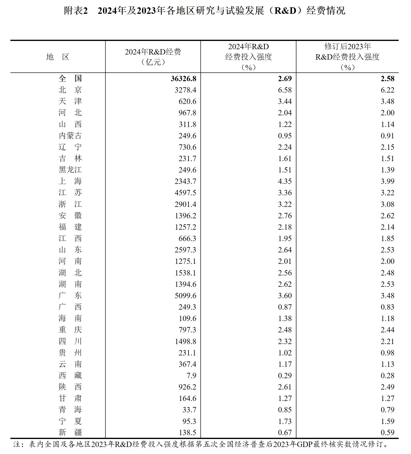 图片来源:《山东省国土空间规划(2021—2035年)》 陈耀认为,山东“三核”结构既已形成,关键在于避免同质化竞争,明确各自的差异化功能定位。 济南作为全省政治文化中心和科创高地,应重点关注文化教育、金融科创、数字经济和现代服务,打造全省前沿应用技术的策源地与中枢。 青岛作为北方航运中心之一、山东省海洋经济龙头和先进制造基地,优势在于国际化、品牌效应与先进制造,未来需深耕港口经济、海洋科技、智能制造与品牌经济。 烟台则以工业和制造业见长,未来应巩固其作为山东新能源与重化工基地的地位,做强石化、高端装备、生物医药、海上风电等优势产业集群。 区域协同同样关键。陈耀强调,胶东城市群一体化需要进一步推进。应以“三核”为中心打造一小时经济圈,带动威海、日照和潍坊等城市群发展,实现产业链、供应链、创新链的高效衔接。 “现在区域竞争比的是科技创新,靠增加高科技产业比重提升产业附加值。”陈耀特别提到,山东要在激烈的区域竞争中胜出,最终必须补齐科技创新这一核心短板。 以数据为证,2024年全国科技经费投入统计公报显示,2024年研究与试验发展(R&D)经费投入强度超过全国平均水平的省(直辖市)有7个,依次为北京(6.58%)、上海(4.35%)、广东(3.60%)、天津(3.44%)、江苏(3.36%)、浙江(3.22%)和安徽(2.76%)。山东为2.64%,尚未达到全国平均水准,与其经济大省的地位不相匹配。