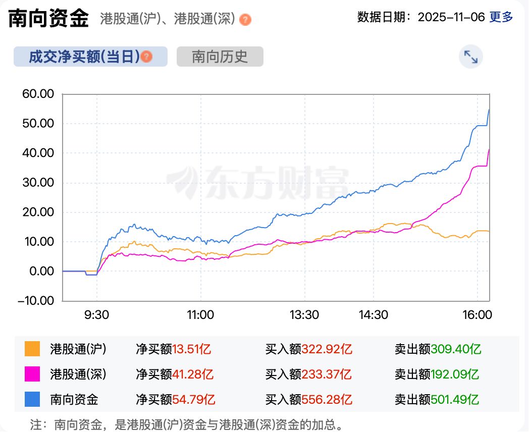 焦点板块方面,半导体、机械、有色金属以及科网股全线走强。 半导体板块中,华虹半导体(01347.HK)大涨9%,中芯国际(00981.HK)涨超7%,脑洞科技(02203.HK)涨超6%,英诺赛科(02577.HK)涨超5%,上海复旦(01385.HK)涨超4%。 机械股中,重庆机电、潍柴动力涨超20%,三花智控涨超7%。此外,中国重汽、三一重工涨超4%。 有色金属板块中,中国铝业涨超11%,中国宏桥涨超9%。黄金股集体走强,紫金黄金国际涨超8%,潼关黄金涨超7%,紫金矿业涨超4%,招金矿业涨超2%。 新股方面,今日4只新股上市。其中,旺山旺水涨超145%,文远知行跌近10%,小马智行跌超9%,均胜电子跌超8%。 盘面上,科网股普涨,阿里巴巴涨超4%,京东涨超3%,腾讯、美团、快手涨超2%,百度涨超1%;中资券商股普涨,华泰证券涨超5%,广发证券涨超4%,东方证券、中国银河、国泰海通涨超3%。 资金方面,截至收盘,南向资金净买入港股金额超54亿港元。