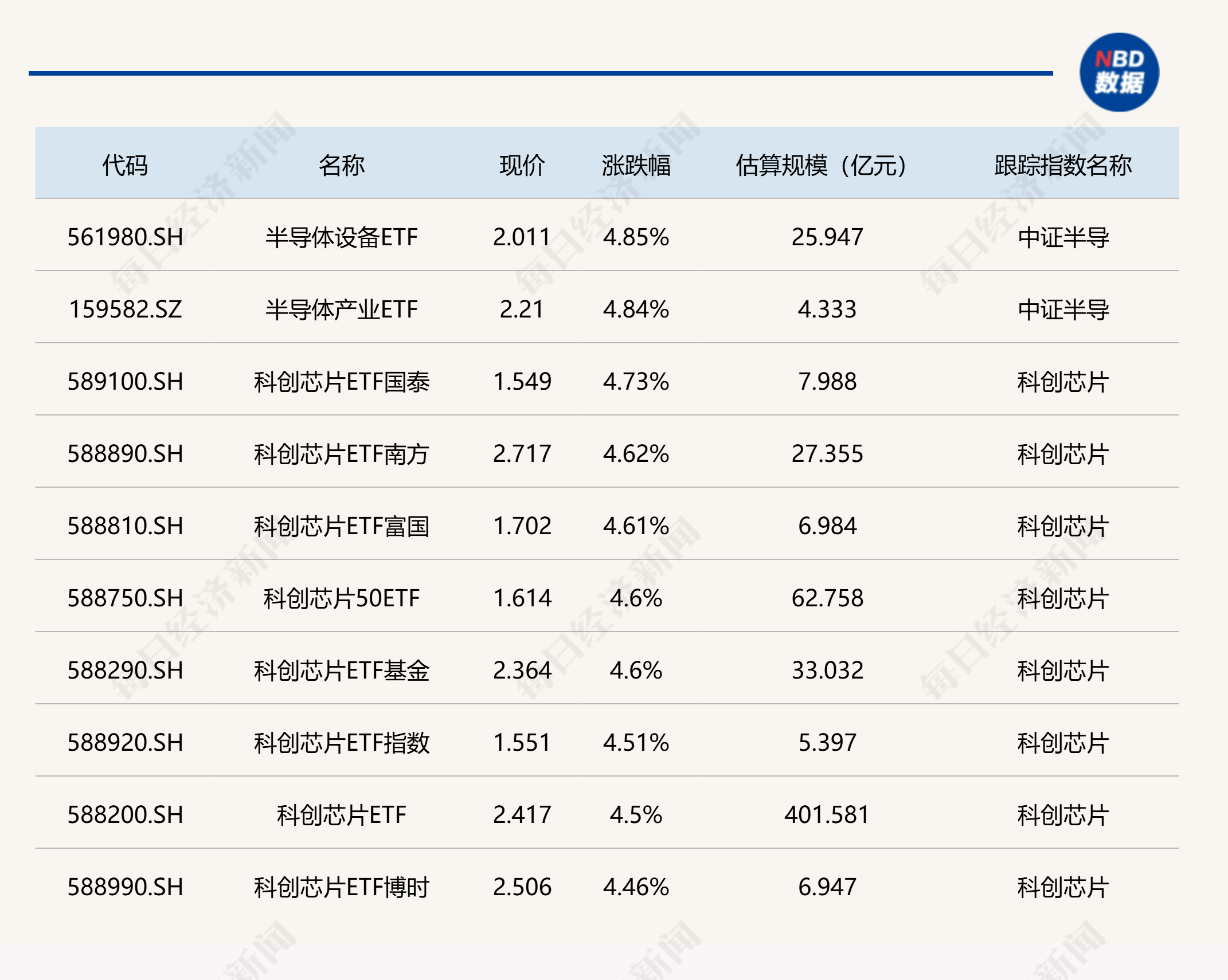 每经记者|叶峰 每经编辑|彭水萍 市场全天震荡走强,沪指放量涨近1%重回4000点。盘面上,化工板块集体爆发,半导体芯片概念持续走高,电网设备板块延续强势,电解铝概念表现活跃。下跌方面,影视、旅游板块集体下挫。 ETF涨跌幅方面,半导体、芯片相关ETF涨超4%。
