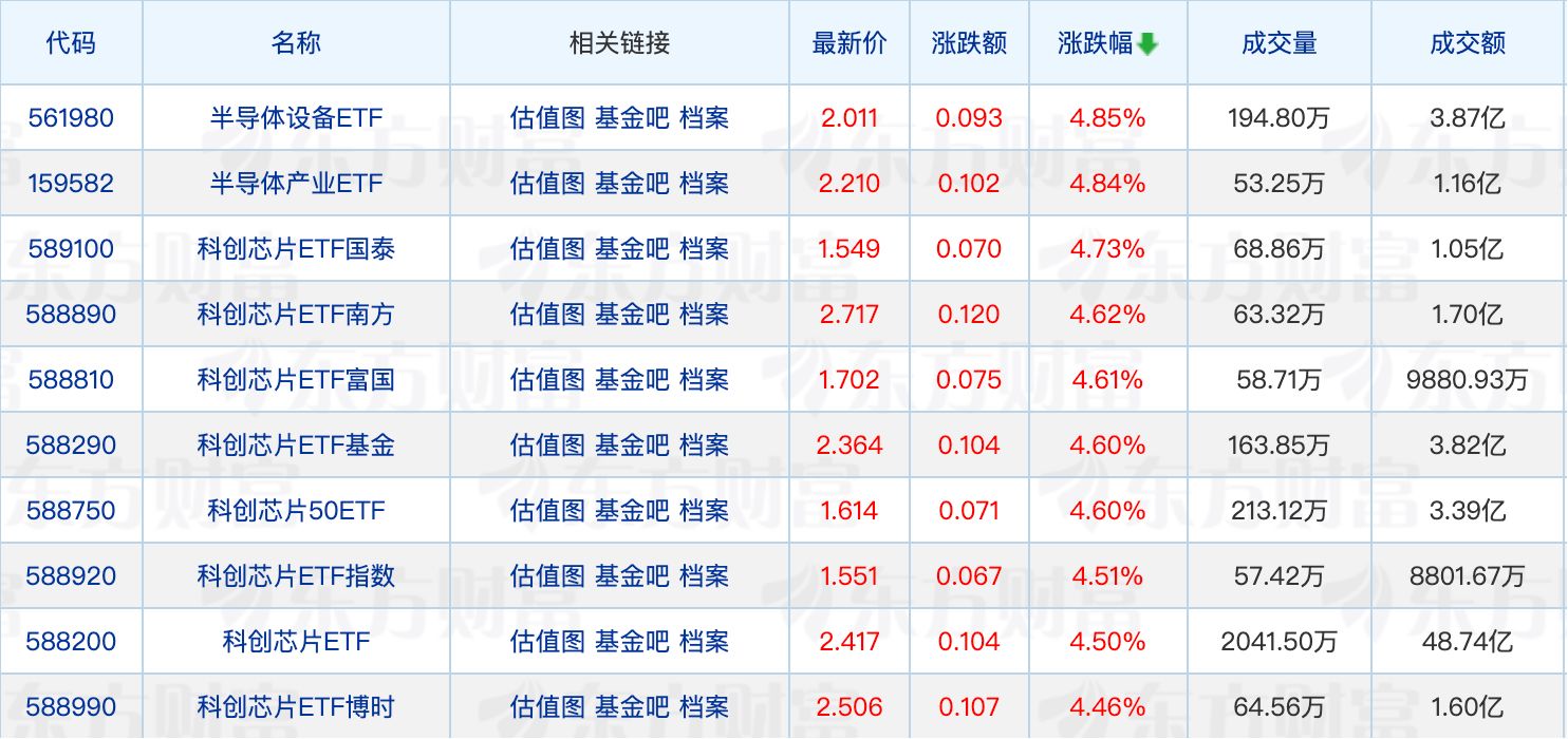 每经记者|肖芮冬 每经编辑|叶峰 天赐良基日报第761期一、今日基金新闻速览1、多只科技类ETF新增流动性服务商 日前,易方达基金、景顺长城基金、银华基金等多家公募公告,为旗下含“科”量较高的ETF新增流动性服务商。据不完全统计,下半年以来已有20余只科技类主题ETF完成流动性服务商扩容,其中超半数为年内新成立产品。 2、公募基金地产持仓比例创新低 根据华泰证券研报,Wind数据显示,三季度房地产板块的基金持仓总市值为558亿元,环比上升15%。地产板块持仓市值占股票投资市值比重为0.62%,环比下降0.05pct。 3、公募最新调研动向 公募排排网数据显示,10月份共有159家公募机构参与A股上市公司调研,共覆盖30个行业的632只个股,合计调研次数达7452次,较9月份环比大幅增长60.57%。行业方面,医药生物等赛道是公募扎堆关注的核心方向。 二、知名基金经理最新动态1、钱亚婷管理的一只基金限购50万元 11月5日,中欧基金公告,即日起,暂停中欧小盘成长混合基金50万元以上的大额申购。据了解,该基金由钱亚婷、汤旻玮共同管理。这是该基金年内第二次发布限购公告。 11月6日,中欧基金再发公告,为充分保护基金份额持有人利益,做好投资管理和风险控制工作,决定自11月6日起,对中欧小盘成长混合基金进行规模控制——基金在存续过程中的基金资产净值上限为20亿元人民币(但因基金份额净值波动导致基金资产净值超过该金额的除外)。 天天基金网数据显示,截至三季度末,该基金A类份额规模为3.06亿元,C类份额规模为8.32亿元。 三、今日ETF行情点评1、ETF行情复盘 市场全天震荡走强,截至收盘,沪指涨0.97%,深成指涨1.73%,创业板指涨1.84%。沪深两市成交额2.06万亿元,较上一个交易日放量1829亿元。板块方面,化肥、有色、能源金属等板块涨幅居前,而船舶制造、旅游酒店、文化传媒等板块回调居前。 具体来看,半导体产业ETF领涨4.85%,科创芯片相关ETF全线走强。