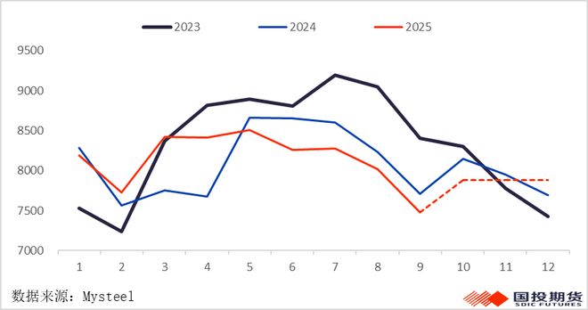现在市场情绪依旧受到“反内卷”相关信息的影响,如果单独看铁合金这两个品种,相对不容易理解“反内卷”走势。那么我们对比其他“反内卷”比较强势的品种,行情就相对容易去理解了。 反内卷的政策考量在于,结构性、阶段性的产能过剩(全球性产能遇到贸易壁垒)导致低价,极端低价会严重挫伤生产端的生产积极性,长期的负现金流会导致生产端萎缩甚至退出生产。这是新能源汽车,动力电池和光伏组件所面临的阶段性困境,并非落后带来的过剩,二是阶段性贸易问题带来的过剩,一旦打开海外市场则得以解决。这里相关的品种有多晶硅、工业硅和碳酸锂,这三个品种走势相对偏强,反弹幅度很可观。除此之外,黑色系的钢材和煤焦也面临着同样的问题。 黑色系中,焦煤的反弹幅度最大,带动着黑色板块一起上行。不过硅锰的跟盘明显弱势,主要系硅锰供应过剩较为明显,而且市场对锰矿累库预期较高,导致了资金关注度相对偏低。7月初以来,铁合金盘面价格更多的体现出寄生属性,走势跟随焦煤为主,不过由于自身基本面对高利润支撑水平较差,走势更多体现为冲高快速回落,底部逐渐抬升。 02 需求仍有韧性 从中钢协粗钢产量数据来看,今年前九个月粗钢产量同比去年基本持平,我们假设粗钢产量和去年持平,四季度粗钢产量并没有特别大的下降空间。对于硅锰来说需求相对持稳,表现出较强韧性。