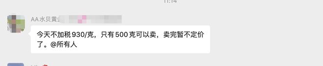 (水贝部分金店的报价情况 第一财经摄) 在一片“涨”声中,仍有部分商家为抢占客户,限量推出“免税额度”。一位中小商家表示,当日其店内不含税金价约为930元/克,但仅开放500克配额。“现在价格每天变动,全看料行供应,有料才能卖。”她称。 一位上游料商表示,由于政策细则尚未明朗,整个行业都在“摸着石头过河”,加税销售被视为更稳妥的选择。