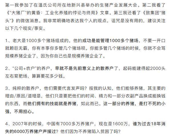 新猪派2025-11-06 09:40:46 18年间消失6000万养猪户,养得好就会做大,小有小的生存逻辑,扬翔股份高远飞谈中小规模猪企路在何方【鲁抗特约·数说猪业】 11月2-3日,2025生猪产业发展大会在广东省云浮市新兴县隆重召开。广西扬翔集团党委书记、副总裁高远飞参加了此次大会后,有感而发,即兴撰文,分享了一些对当前国内生猪产业发展趋势的思考,原文如下。