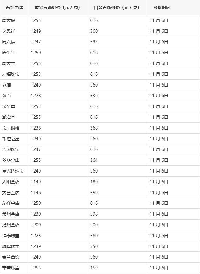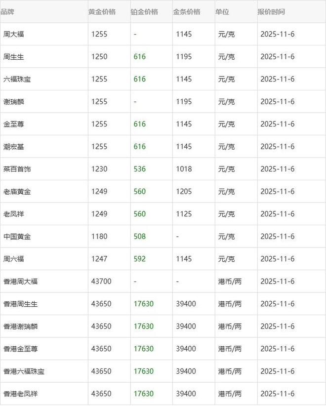 今日金价实时行情(2025年11月6日)
