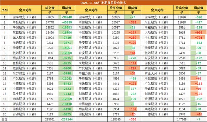 红枣期货总持仓排名