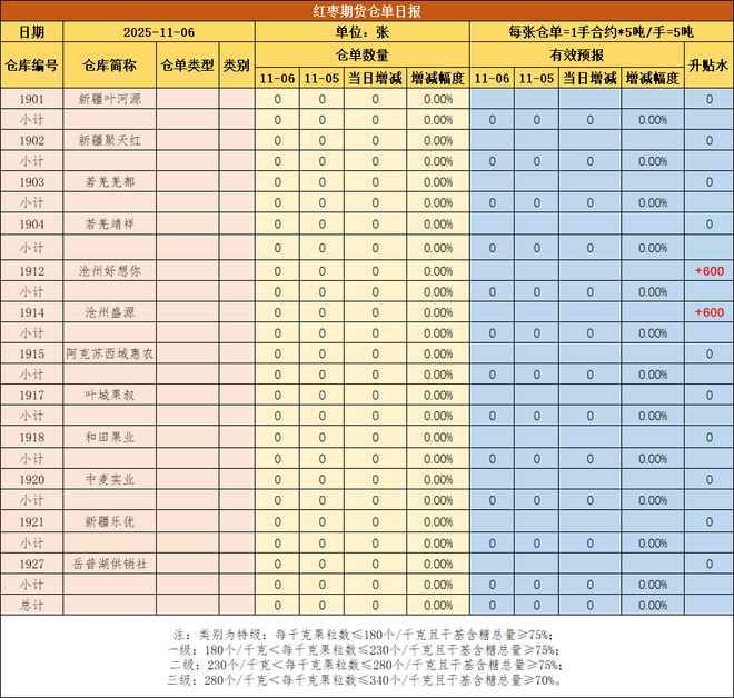 红枣期货仓单日报