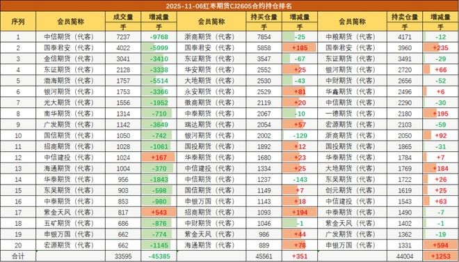 红枣期货CJ2512合约持仓排名