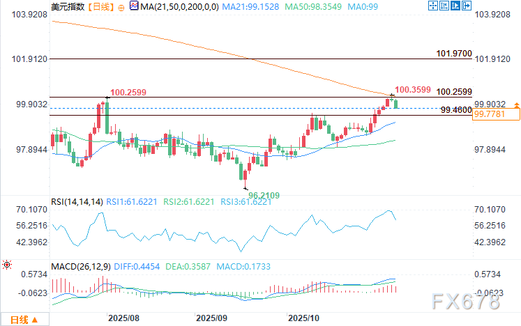 周四(11月6日)美盘时段,劳动力市场疲软拖累美元和收益率,美元指数下跌,在本周早些时候尝试突破100.360失败后,其回调幅度扩大至200日均线以下。该指数下跌0.3%,至99.753。在裁员公告激增和美国国债收益率普遍下降后,风险情绪变得谨慎。 ![]() 债券市场对裁员激增和法律不确定性做出强烈反应 随着固定收益市场对不断恶化的劳动力前景做出反应,美国国债收益率全线走低。10年期国债收益率下跌超过6个基点,至4.089%,2年期国债收益率降至3.566%,30年期国债收益率降至4.686%。 此前,美国最高法院大法官对特朗普政府时期推出的互惠关税的合法性表示怀疑。如果对该政策做出不利裁决,可能会缓解贸易紧张局势和通胀预期,进一步压低收益率。 债券市场的鸽派重新定价将芝加哥商品交易所(CME)美联储观察工具显示的12月降息的隐含概率从前一天的62%推高至69%,逆转了美联储11月声明后出现的部分鹰派重新定价。 货币交叉波动加剧美元疲软 美元还面临来自货币交叉波动的额外压力。欧元上涨0.3%,至1.15225美元,而在英国央行维持利率不变后,英镑上涨至1.3088美元。尽管英国央行的决定被广泛预期,但它有助于保持与美元的利差,加剧了美元指数篮子中的抛售压力。日元也走强,美元兑日元下跌0.4%,至153.51,进一步拖累了美元指数。 短期展望:美元指数面临更大回调风险 ![]() 美元指数日线图显示,在200日均线下方的确认反转已在短期内决定性地改变了市场对美元的看法。如果当前的抛售压力持续,美元指数可能会测试99.463的支撑位,这是50日均线99.359之前的最后一道防线。由于劳动力数据走软、收益率下降以及货币交叉表现走强,下行风险仍然较高,除非新的数据或美联储的评论改变预期。 |