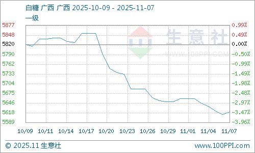 据生意社商品行情分析系统监测:周初国内一级白糖均价为5646元/吨,周末国内一级白糖均价为5620元/吨,价格下跌0.47%。 市场分析 国内方面,现货市场交易表现欠佳,贸易端采购谨慎,随着云南新糖零星上市,适当小单拿货维持低水平库存,终端食品、饮品行业消费正值淡季,下游市场备货意愿低迷,围绕生产刚需制定订货计划,叠加内蒙新糖压榨进入高峰和进口糖的继续补充,国内糖市缺乏利好驱动,本周白糖价格下滑。 截至目前2025/2026制糖期内蒙、新疆地区糖厂已经全部开榨;云南地区已有一家开榨。本周现货面终端采购意愿一般,主要维持刚需补货,贸易端交易亏损风险不减,拿货态度谨慎,叠加国内甜菜糖以及加工糖大量补充供应,糖市供需关系较为宽松。 后市预测 国内白糖供应充足,市场消费正值淡季,预计短期内白糖价格或将以震荡偏弱走势为主。 【大宗商品公式定价原理】 生意社基准价是基于价格大数据与生意社价格模型产生的交易指导价,又称生意社价格。可用于确定以下两种需求的交易结算价: |