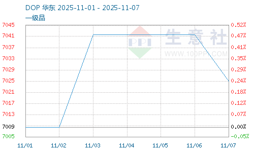 据生意社商品行情分析系统,截止11月7日,丙烯价格5890.75元/吨,较11月1日丙烯价格6058.25元/吨震荡下跌,跌幅2.61%。本周丙烯价格震荡下跌,原材料价格下跌,异辛醇成本下降,异辛醇价格下跌压力加大。 下游增塑剂DOP价格震荡上涨