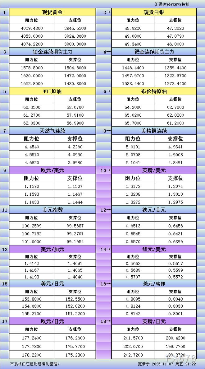 汇通财经讯——11月7日美市美市更新的黄金、白银、铂金、钯金、原油、天然气、铜(商品)以及:美元指数、欧元、英镑、日元、瑞郎、澳元、加元、纽元(热门货币对)的支撑阻力位一览。 汇通财经APP讯——11月7日美市美市更新的黄金、白银、铂金、钯金、原油、天然气、铜(商品)以及:美元指数、欧元、英镑、日元、瑞郎、澳元、加元、纽元(热门货币对)的支撑阻力位一览。 【免责声明】本文仅代表作者本人观点,与汇通财经无关。汇通财经对文中陈述、观点判断保持中立,不对所包含内容的准确性、可靠性或完整性提供任何明示或暗示的保证,且不构成任何投资建议,请读者仅作参考,并自行承担全部风险与责任。 |
