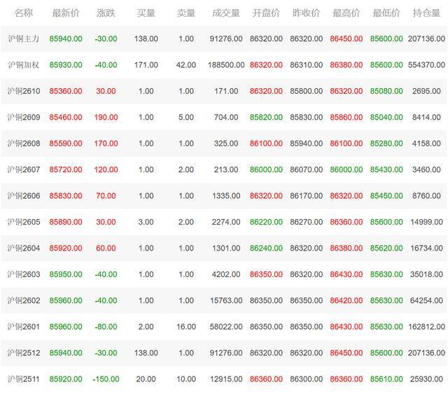 2025年11月8日沪铜主力最新价格及行情: 11月8日,国内沪铜主力合约呈现宽幅震荡、尾盘收平态势,产业链相关资产则表现分化,A股铜板块多数调整,国际市场铜价与国内呈现一定背离。整体来看,宏观情绪与产业基本面的博弈主导当日市场走势,短期价格波动加剧。 一、沪铜主力震荡收平,日内呈现“高开低走再反弹”特征 当日沪铜主力合约(CU888)以86450元/吨高开,开盘后迅速下探至日内低点85600元/吨,随后震荡回升,最终收报85940元/吨,与前一交易日持平(注:原始数据显示“收盘价86320元”与“最新动态85940元”存在差异,此处以“最新动态”为准),单日下跌30元/吨,跌幅0.03%。从日内走势看,价格波动幅度达850元/吨,显示多空双方在86000元整数关口激烈博弈,市场对宏观经济预期及下游需求恢复节奏存在分歧。 值得注意的是,沪铜主力合约开盘价与收盘价价差收窄,技术面上形成“十字星”形态,通常被视为短期趋势转折的信号之一。市场分析认为,当前铜价处于前期震荡区间上沿,需关注后续库存数据及美联储货币政策动向对价格突破方向的指引。 二、A股铜板块分化显著,铜峰电子逆势领涨 当日A股铜产业链上市公司多数承压,板块内呈现“少数上涨、多数调整”的分化格局。铜峰电子(600237) 成为唯一逆势走强的标的,股价收报8.40元,上涨0.36元,涨幅4.48%,领涨板块,市场推测其走强可能与公司近期在电子元件领域的订单释放或技术突破有关。 其余主要标的普遍调整:铜陵有色(000630) 收报5.21元,下跌1.33%;江西铜业(600362) 微跌0.20%,收报39.87元,显示头部铜企受期货价格波动及市场情绪影响较大;楚江新材(002171) 调整幅度最大,下跌3.86%,收报12.22元,或与市场对其铜加工业务毛利率承压的担忧有关。 细分领域标的同样表现疲软:铜箔龙头铜冠铜箔(301217) 下跌1.06%,收报33.48元;铜加工企业金田股份(601609) 下跌1.07%,收报11.09元,反映出产业链中下游企业面临需求端复苏缓慢的压力。 三、国际市场联动性增强,内外盘走势出现分化 当日国内外铜资产价格呈现一定背离。港股江西铜业股份(00358) 跟随A股调整,收报31.660港元,下跌0.25%,跌幅略小于A股母公司,显示港股市场对铜价波动的敏感度相对较低。 美股市场铜企则逆势走强:南方铜业(SCCO) 收报137.24美元(注:原始数据单位为“元”,结合美股实际计价习惯调整为美元),上涨0.97%,主要受益于隔夜美元指数回落及市场对全球铜矿供应扰动的担忧。这一走势与国内市场形成对比,反映出国际投资者对铜价的乐观预期略强于国内。 COMEX铜期货各合约同步上涨,其中2503合约(2503HG25H)表现最强,收报5.0290美元/磅,上涨0.77%,2501合约(2501HG25F)涨幅0.32%,显示国际市场对短期铜价的乐观情绪,尤其是近月合约涨幅领先,反映出现货端需求改善的预期。 四、市场驱动逻辑与后市展望 当日铜市场的分化走势主要受三方面因素影响:一是国内宏观情绪偏谨慎,A股整体回调压力传导至周期板块,铜企股价随大盘走弱;二是国际铜价受美元走弱支撑,美联储加息预期降温推动有色金属金融属性溢价回升;三是产业链基本面差异,废铜回收价格稳定及精炼铜库存去化对铜价形成底部支撑,但下游线缆、家电等行业开工率尚未显著回升,限制价格上行空间。 展望短期,沪铜主力或维持85500-86500元/吨区间震荡,A股铜板块需关注龙头企业三季报业绩披露情况及政策面利好(如新能源领域用铜需求刺激)对情绪的提振作用。国际市场方面,COMEX铜价若能站稳5美元/磅,或对国内市场形成正向传导,反之需警惕内外盘共振调整风险。 沪铜主力最新价格: